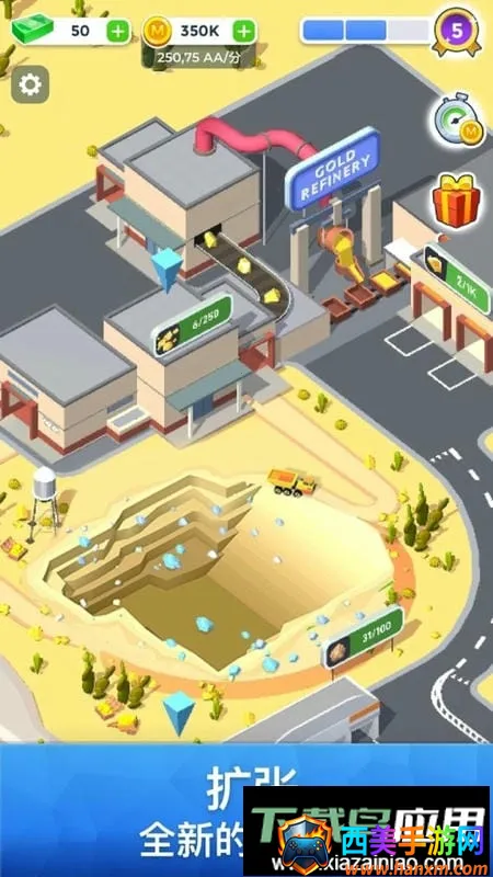 这款矿业模拟游戏带来了丰富且独特的体验。玩家能从小矿起步,一路发展成商业巨头。游戏中可深入挖掘地球深处,发现各类珍稀矿石和资源,开采是核心,要合理利用工具和设备,规划流程,提高资源获取效率。解锁强大机器进行加工,创建生产链推动业务发展。还能雇佣工人和经理全面管理,升级设备让工厂不停运作。不仅如此,建设城镇吸引居民,租户技能会影响工厂效率和产品售价。升级选项丰富,即使不活跃游戏,企业也自动运作积累财富。面对策略选择,合理分配资源等是成功关键。总之,能让玩家构建产业帝国,享受无广告干扰的纯粹体验,值得一试。