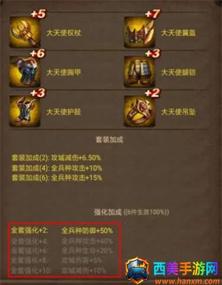 6件同品质装备中,6件装备属于同一套装,则发挥红框强化加成的100%