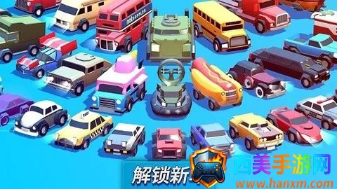 疯狂撞车王是一款超刺激的实时多人游戏。玩家能驾驶自己创建的战车与他人对抗,拾取各种道具,还能联机和好友一起享受乐趣。它有诸多亮点,比如新手教程完成有专属金币奖励,七日登录每天都有不同额度奖励,完成今日任务也能领取专属奖励。而且游戏模式丰富,像经典模式收集皇冠、闪电战模式通过击杀对手得分等。游戏里有18张地图、270多辆不同级别可解锁汽车、330多种皮肤以及16种可升级强化道具。在这里,你可以尽情享受撞车竞技的快感,体验多样玩法带来的乐趣,绝对值得下载一试!