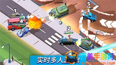丰富游戏内容:拥有多种游戏模式,如经典模式、闪电战模式、小战役模式、团队死亡比赛模式、CTF模式等;还有18张地图、270多辆4种不同级别可解锁汽车、330多种皮肤、16种可升级强化道具等,可自定义汽车,体验丰富刺激的游戏内容。
