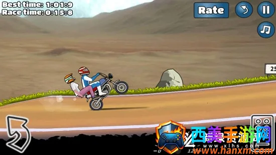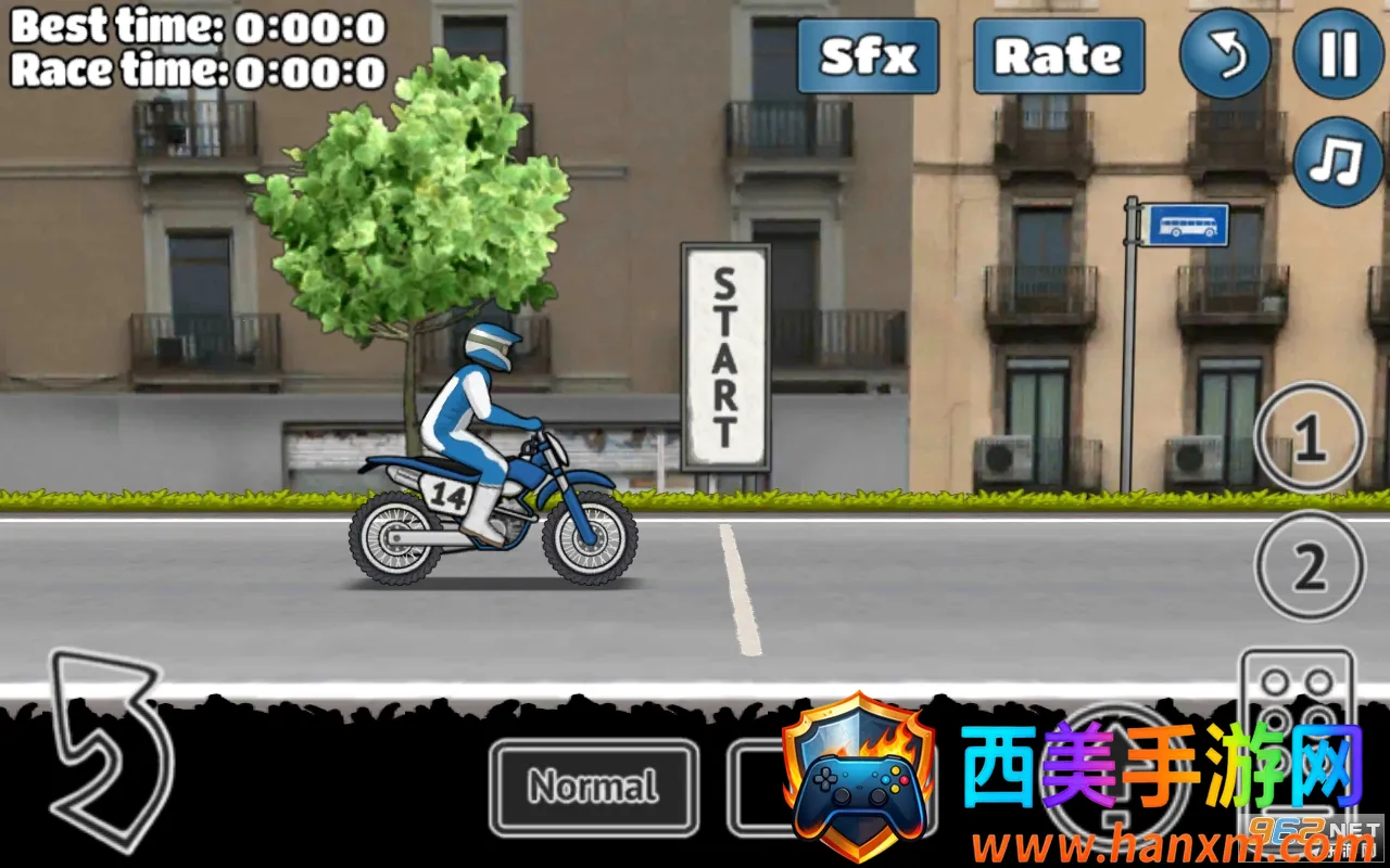 创新操作模式:融合体感与触控,倾斜手机可辅助微调方向,虚拟把手布局符合真实骑行逻辑,右侧油门支持点击爆发加速与长按持续提速,配合不同地形灵活切换。