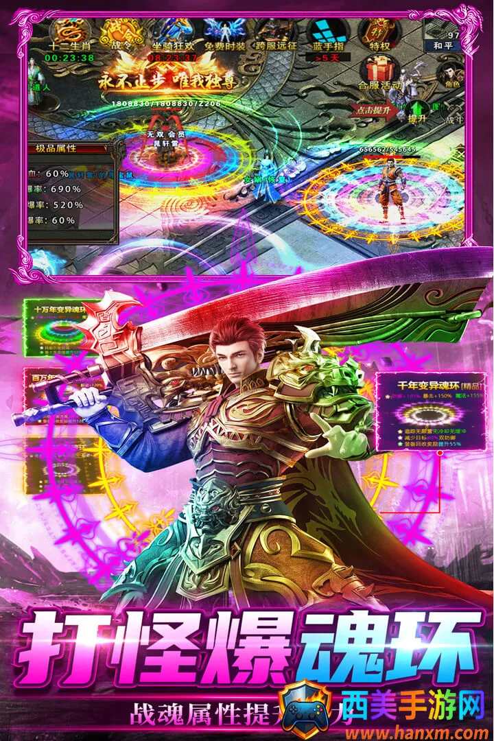 烈刃冲锋安卓版是单职业复古打金传奇手游,还原经典玩法,主打怀旧公平PK。完成任务领满级VIP,装备带宝石。多倍爆率BOSS之家,还有丰富活动产出重要材料。上线送神装等,福利丰厚,能自由PK、跨服竞技,感受传奇乐趣。