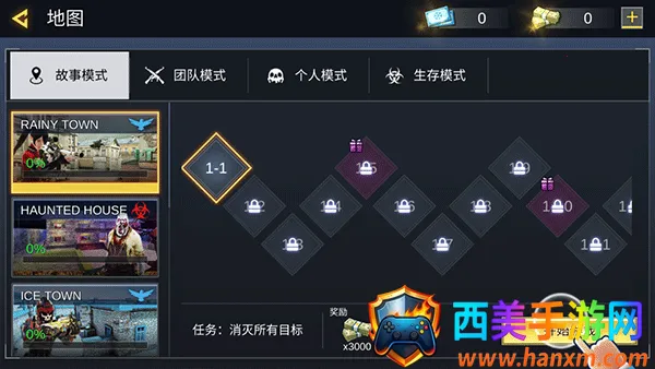 2、玩家在游戏中可以选择自己喜欢的模式进行畅玩,其中提供了故事、团队、个人、生存模式这四种玩法模式可以体验;