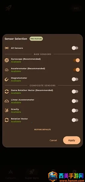 1. 专业校准:提供陀螺仪传感器精密校准功能,有效解决设备漂移问题,同时支持加速度计校准,确保运动数据输入更平滑、全面。