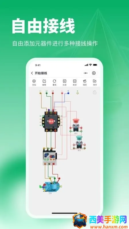 该软件优势显著。**能自由添加元器件并进行专属接线布局,制作完成后可保存作品随时查看修改**。可轻松绘制电路图并在仿真环境监测参数,提供一站式服务助力提升技能。仿真时自动检测故障并给警报提示,还有作品社区方便分享学习。支持社区分享互动,内置备考功能,仿真精度高,学习场景多样,涵盖家庭照明、工业控制等,适配不同需求,无论是电路设计还是学习备考都极为实用。
