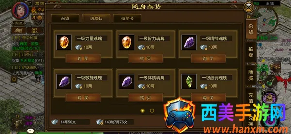 随身商店会出售魂魄石,绑定银两就能购买。根据自己的喜好选择要购买的魂魄石,魂魄石的合成基数为5个,根据你预计达到的魂魄石等级,以及当前的魂魄石剩余数量来考虑具体的购买数量哦。