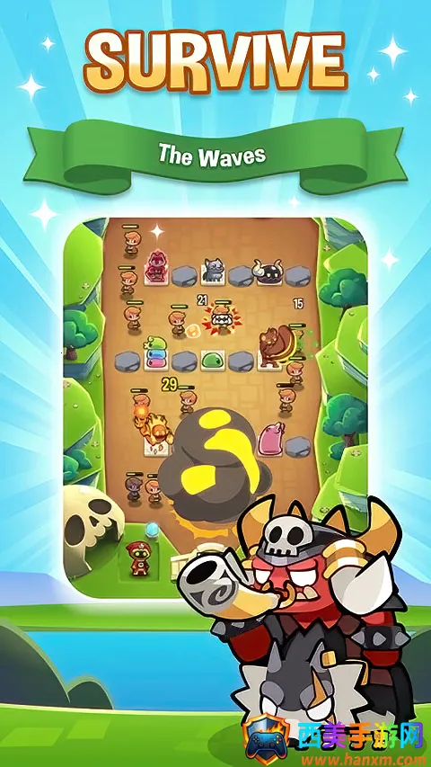 3. 宝箱守护核心玩法有趣:战场中央放宝箱,敌人四面进攻。玩家布局怪物,利用地形与射程输出。宝箱血量归零则失败,防守压力递增,考验策略调整能力。