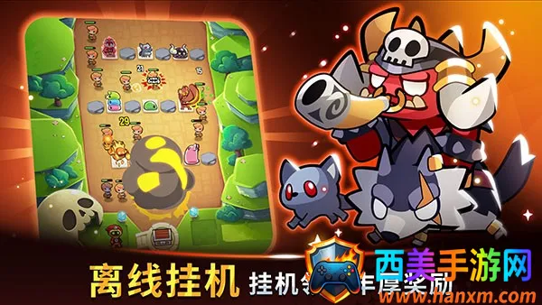 4. 放置挂机轻松推进:支持离线挂机获金币与经验,睡醒领收益。战斗自动进行,玩家专注布阵与升级决策,适合碎片时间游玩。