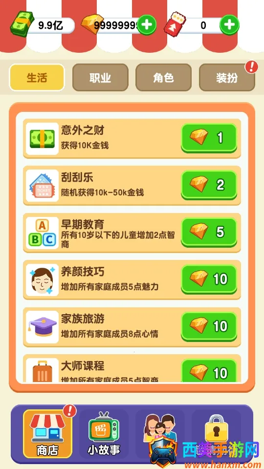 1. 高度自由成长:无预设目标与线性任务链,成长节奏和人生方向全由玩家掌控。可专注事业攀登,也能深耕家庭建设,还能探索多重人生可能。职业路径灵活,可随时更换工作,未开放岗位能用黄钻即时解锁,降低试错成本,提升决策自由度。