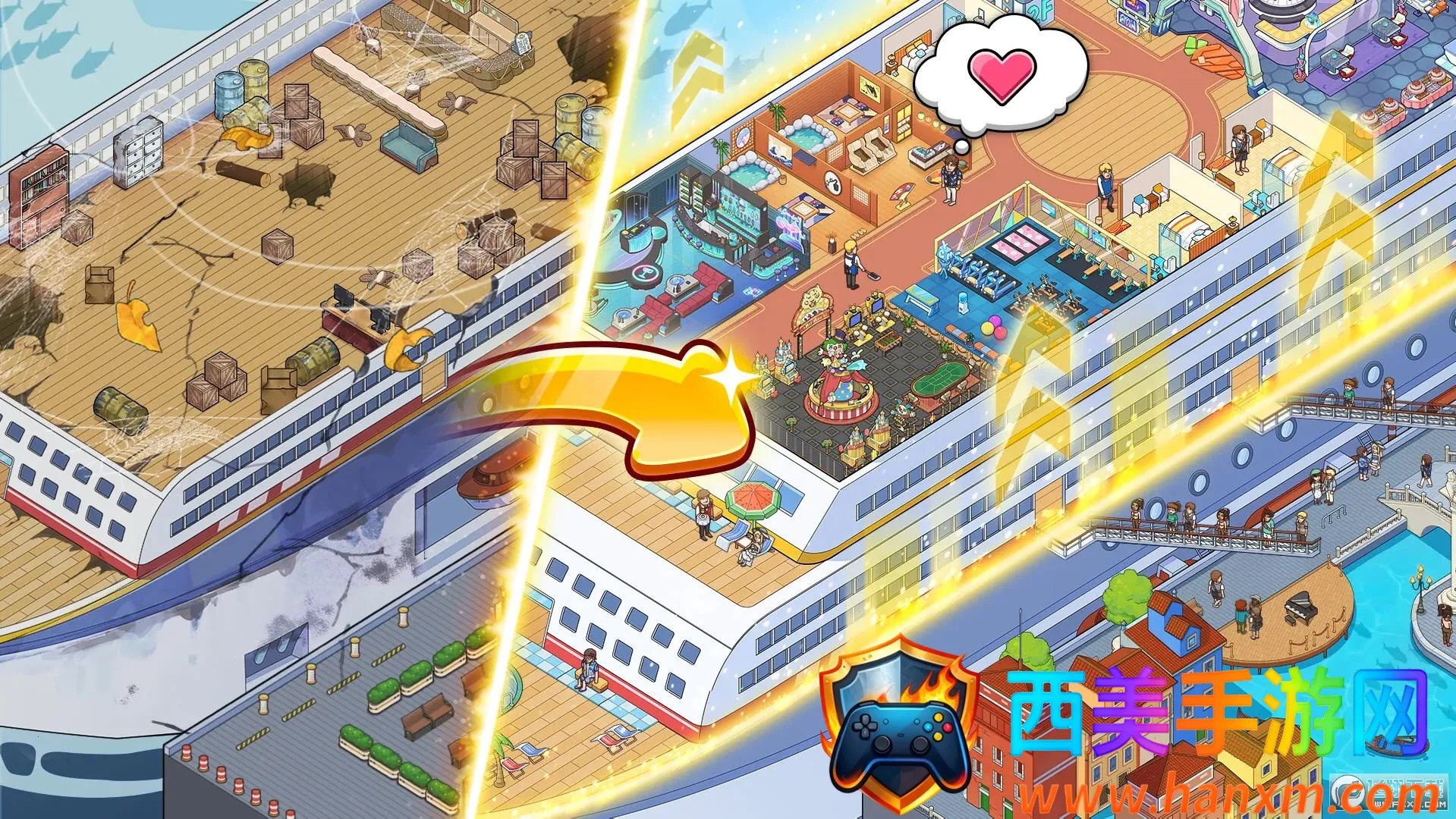 我的游轮破解版下载,这是一款模拟经营游轮的游戏。玩家化身经理,负责运送游客,完成任务领奖励升级建筑。有放置玩法、高品质物理引擎,可打造游艇、应对突发,还能联机互动,解锁更多玩法。