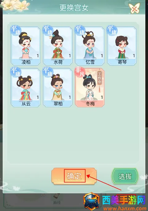 1、玩家点击右下角的选拔即可进行采女的选拔,选择合适的采女加入宫中进行工作。