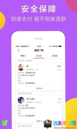 3. 安全可靠有保障,通过人工审核资料、身份认证、支付担保三重保障,让你安心体验。