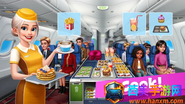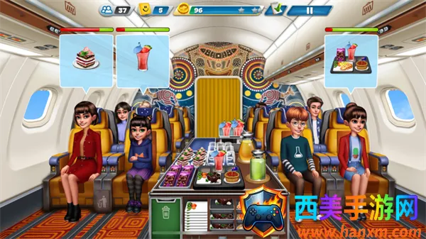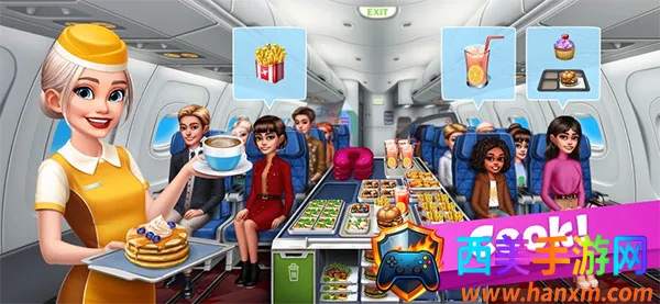 3、独特时间管理机制,让你感受真实飞机上的烹饪氛围,为乘客提供顶级舒适美食,体验快节奏烹饪乐趣。快节奏烹饪乐趣