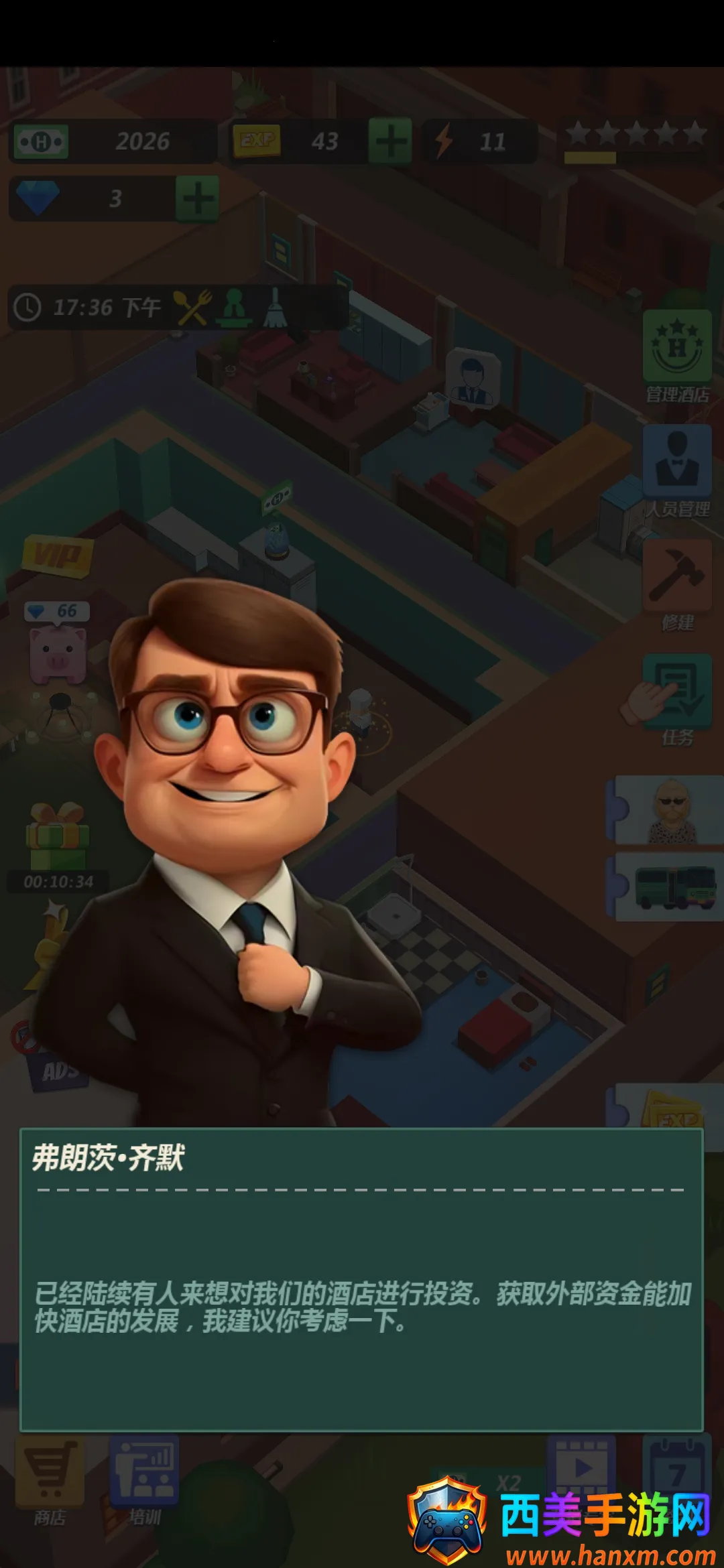 4. 无限发展可能:可扩大帝国、升级设施、吸引贵宾,见证酒店成为全球旅行者首选。