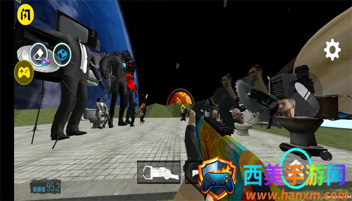 想体验独特的太空射击冒险吗?试试马桶人太空沙盒汉化内置模组版!进入游戏,能自由选地图开启战斗之旅。这里马桶人成了太空外星人,你要用各种武器消灭他们,过程中可拿到更强武器,用AOE打击敌人。内置菜单功能超实用,免广告得奖励,角色无敌、无限子弹、无限飞行、游戏加速还能调节。玩法简单易上手,进入游戏后,点击右边按键射击,左边箱子按钮选敌人添加,用控制枪放置后射击,怪物就会攻击,左下角显示生命值,归零游戏结束。还有各种人物mod可添加。它能满足你自由发挥创造力的需求,带来丰富创意元素和优质挑战享受,不同任务有多样挑战目标,社交互动元素足,创新沙盒模式让你尽情冒险,绝对是喜欢沙盒与脑洞玩法玩家的不二之选!