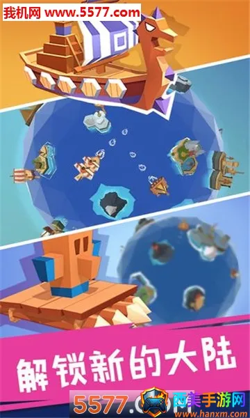 2. 创新星球设定:创新的三维立体星球设定,打破传统平面限制。玩家可在球形地图自由探索,开发岛屿,发现隐藏宝藏和未知大陆,还能通过收集资源进化星球获取更高级船只。