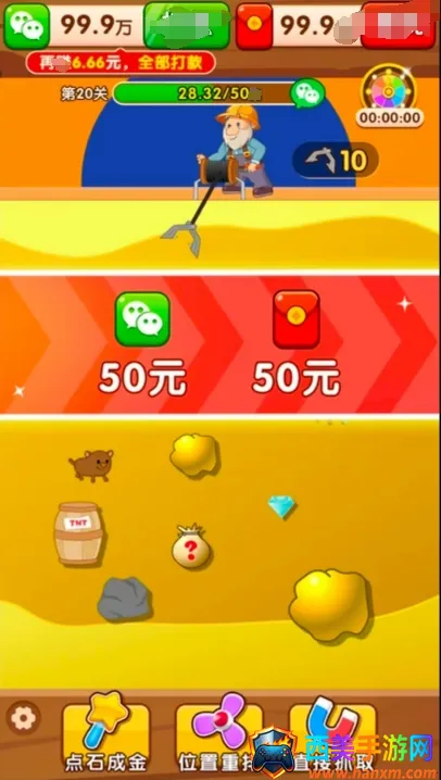 3. 操作简单轻松:通过虚拟摇杆控制抓钳左右移动,点击按钮下落精准捕捉宝藏。