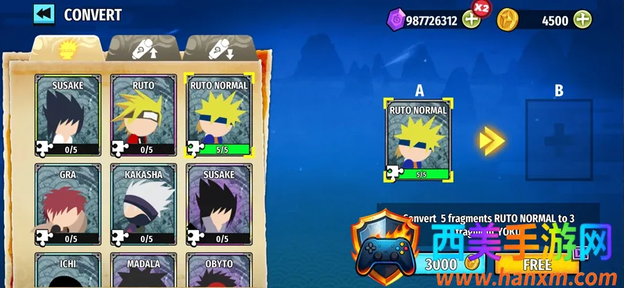 4、游戏画面精致细腻,弥漫浓厚动漫风格,2D横版模式带来不一样的视觉感受,仿佛置身于精彩的忍者世界。