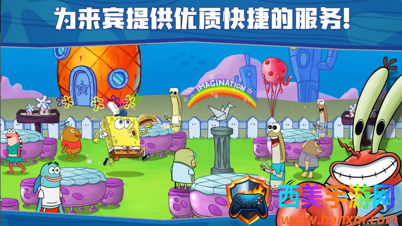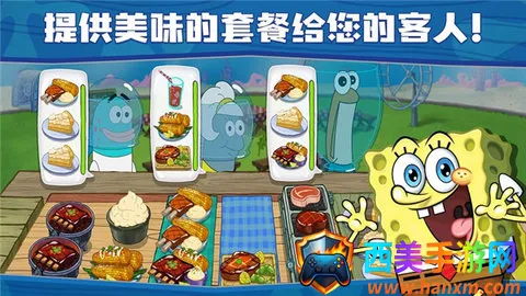 海绵宝宝大闹蟹堡王汉化版是正版授权的模拟经营手游。玩家扮演海绵宝宝,在比奇堡经营餐厅,制作动画同款美食。有独家剧情、经典角色互动,数百关卡助你成大厨,还有自由DIY玩法,快来体验开店乐趣。