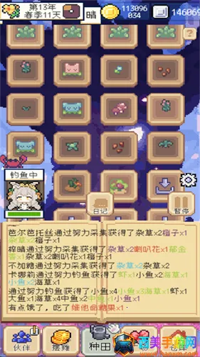 种田高手1.4.2是一款温馨治愈的佛系种田手游。玩家扮演农场主,经营农场,种植养殖、销售农产品。有丰富剧情,多种玩法,67种作物、50位伙伴、40种动物,120种食谱,还修复了延时加载bug。