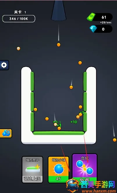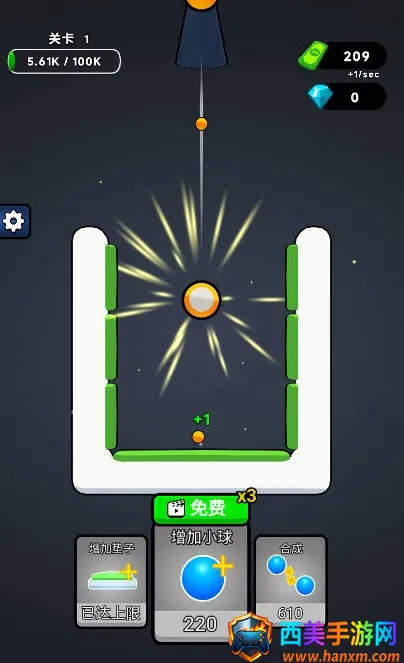 这款游戏轻松有趣,玩家初始只有一个小球,在区域内弹跳可产生金币。通过策略增加小球数量和电子数量,提升金币产生效率,还能合成小球获更高收益。闯关时合理规划合成时机很关键。游戏玩法围绕合成进阶,点击相同小球可合成,级别越高收益越高,免广告模式能获更多道具。其特色是道具丰富,如金币道具、自动合成道具、清除障碍道具等。操作简单易上手。亮点在于卡通画面、轻松音乐、可爱小球造型,闯关需策略规划,还有不定期免费道具助提升收益、快速通关。实际体验能带来畅快自由之感,点击生成合成小球获金币收益,道具效果带来不错视觉体验。