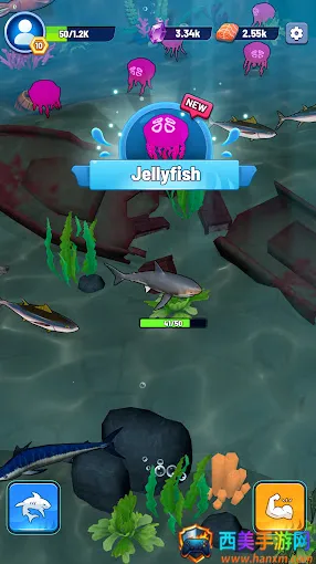 这款海底吞噬成长类手游超好玩!玩家从一条小鲨鱼起步,通过不断吞噬各种生物来实现成长。吞噬能获得食物资源,借此升级解锁更多技能,让你在海洋中称霸。游戏开始后,拖动屏幕移动鲨鱼吞噬其他鱼类就能获取资源升级能力。持续吞噬新鱼类可解锁图鉴拿奖励,完成上方任务也有奖励,通过吞噬食物和做任务提升等级。每个区域都有大型鱼类BOSS,击败后能前往新区域。它的特色很突出,吃掉的鱼是进化能量,还有超强BOSS等你挑战,能解锁突变改变狩猎方式,获得毁灭性能力,更能解锁史诗般皮肤定制捕食者。在这里,你能清晰感受到鲨鱼进化吞噬与成长紧密相连,享受畅快解压的游戏体验,快来试试吧!