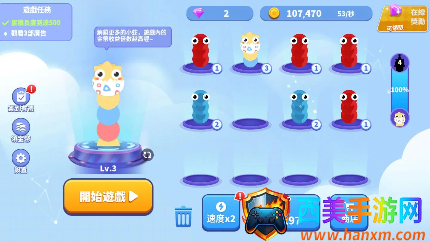 贪吃蛇进化论是融合放置合成与IO对战的游戏。玩家操控小蛇吃金币变长,合成解锁多样蛇蛇。还有IO对战,用技巧吃对方金币。内置修改器版可获无限金币钻石、免广告等功能。