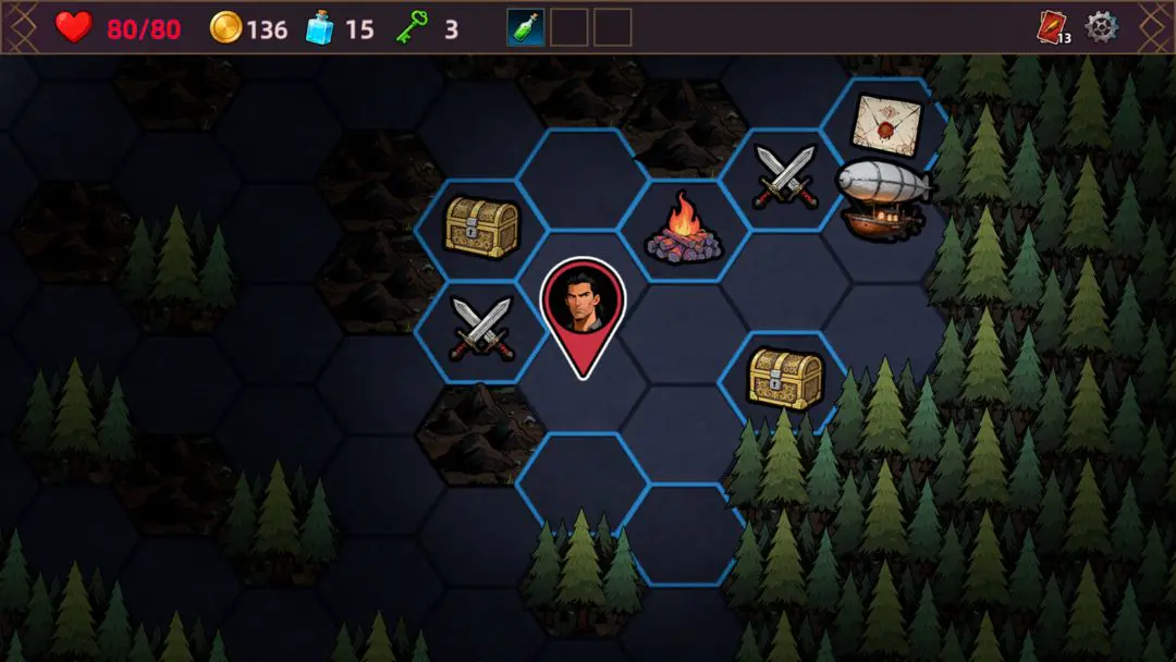 六边形地图探索超灵活,能找宝藏秘密,地图机制容错率高,鼓励冒险。浮空酒馆能查看图鉴、招募猎人、与玩家互动,是策划策略的核心地。特色卡牌战斗机制,每场战斗都要策略应对,考验对卡牌属性和敌方反应的理解。总之,它能带你开启一段充满勇气、策略与探索的史诗旅程,享受无与伦比的战斗乐趣!