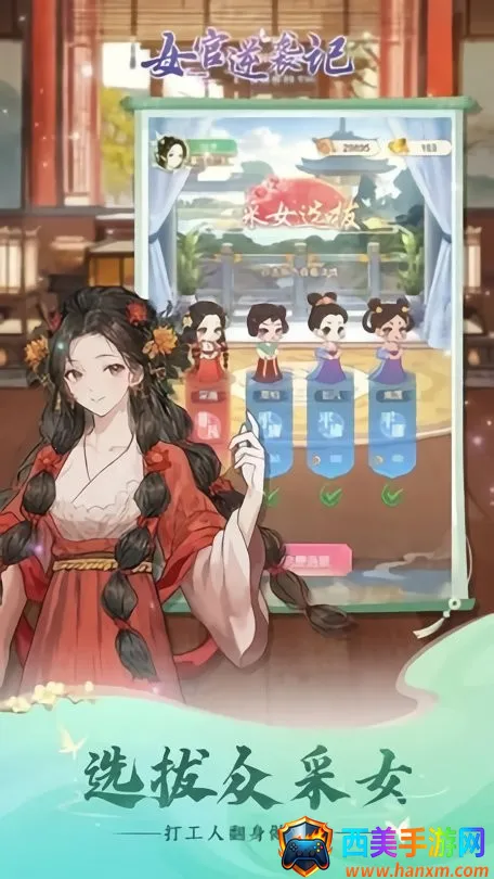想知道女官如何逆袭?来试试这款《女官逆袭记》手游呀!它能带你体验精彩的宫廷经营。在游戏里,你将扮演穿越到唐朝宫廷的底层女官,饱受嘲讽。但别怕,你可以通过经营司织房来逆转人生。这里有丰富玩法,比如建造纺织机和床位,选拔合适采女培养成宫女帮你发展。还有精彩纷呈的剧情,带来沉浸式互动体验。你能通过选拔升级宫女解锁羁绊成就,完成主线、历练、探索、收集等任务解锁更多成就。游戏亮点多多,能让你赏宫廷风貌,经营特色司织房,魂穿大唐邂逅有缘人,选拔采女实现打工人到掌房的转变,闲游御花园体验趣味事件,烧脑解隐谜揭开深宫秘闻。快来下载,开启你的女官逆袭之旅吧!