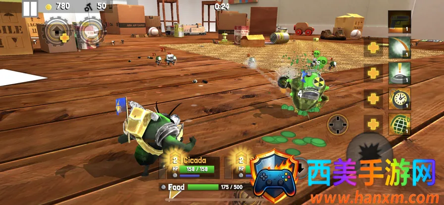 进入游戏选好模式和英雄就开干。战斗中,左边屏幕控制英雄移动,右边转动视角,英雄遇敌自动攻击。击败敌人得经验升级,获点数解锁技能。点击基地附近装置上方按钮,消耗零件强化或解锁防御装置。记得收集食物和零件建设基地,击退敌人保护它。摧毁对方基地就能赢。这游戏操作简单易上手,不管新手还是老玩家,都能在这充满策略的虫虫世界里,体验到独特的战斗乐趣,快来试试吧!