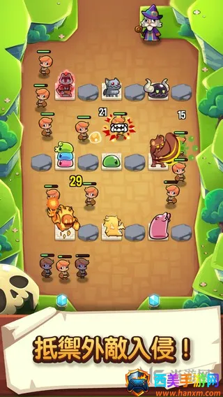 3、可使用并升级多样法术,不仅能华丽清场,还能强化怪物作战能力。同时,玩家要击败各具特长的入侵英雄,每位英雄都拥有专属技能与应对策略。