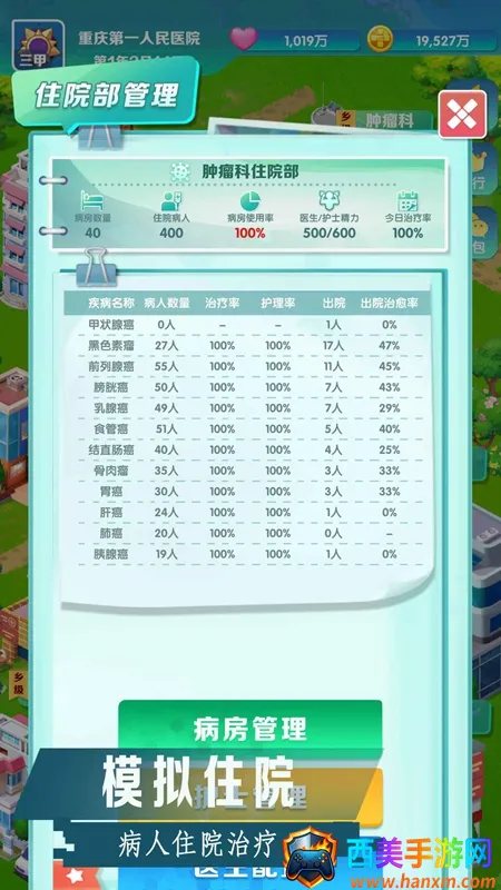 医生培养系统:聘用后可查看职业及治愈率,治愈率低能培训提升,不合格可开除。还能通过专项培养提高医生通过临床职称考试概率。