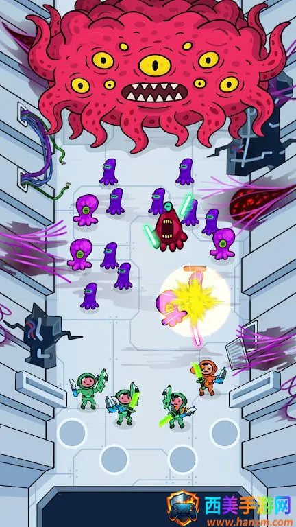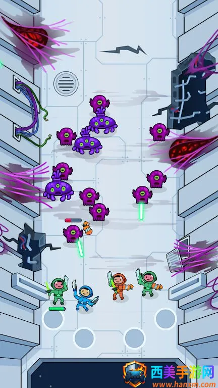 这款游戏充满了刺激与挑战。你要指挥宇航员队伍拯救空间站,抵御外星人、机器人、掠食性植物和太空怪兽的入侵。为宇航员准备战斗,合并武器打造更强火力。在清理后的空间站找新武器拓展战略。将宇航员射向太空,在零重力环境下控制飞行轨迹,避开障碍物收集奖励,全副武装队员。在被敌人占领的空间站作战,应对机器人炮塔、太空蜘蛛粘性陷阱等异常情况。击败所有攻击波,挑战史诗级Boss,拯救银河系。整个游戏过程紧张刺激,能让玩家充分体验太空战斗的魅力,沉浸其中,享受这场独特的冒险之旅。