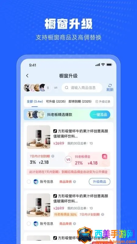 抖老板带货最新手机版是抖音直播电商辅助软件,免费提供海量热门商品样品,对接优质供应链。可多账号管理、分析数据,提升带货效率。功能丰富,如橱窗升级、实时更新榜单等,优势明显,助用户轻松选品、管理订单。