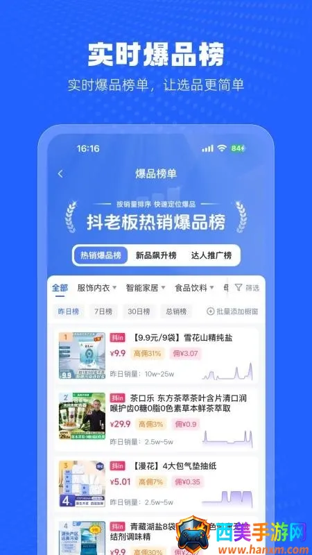 4. 可实时追踪爆品榜单,提供不同时间维度的热销榜单,及时反映平台爆款趋势。
