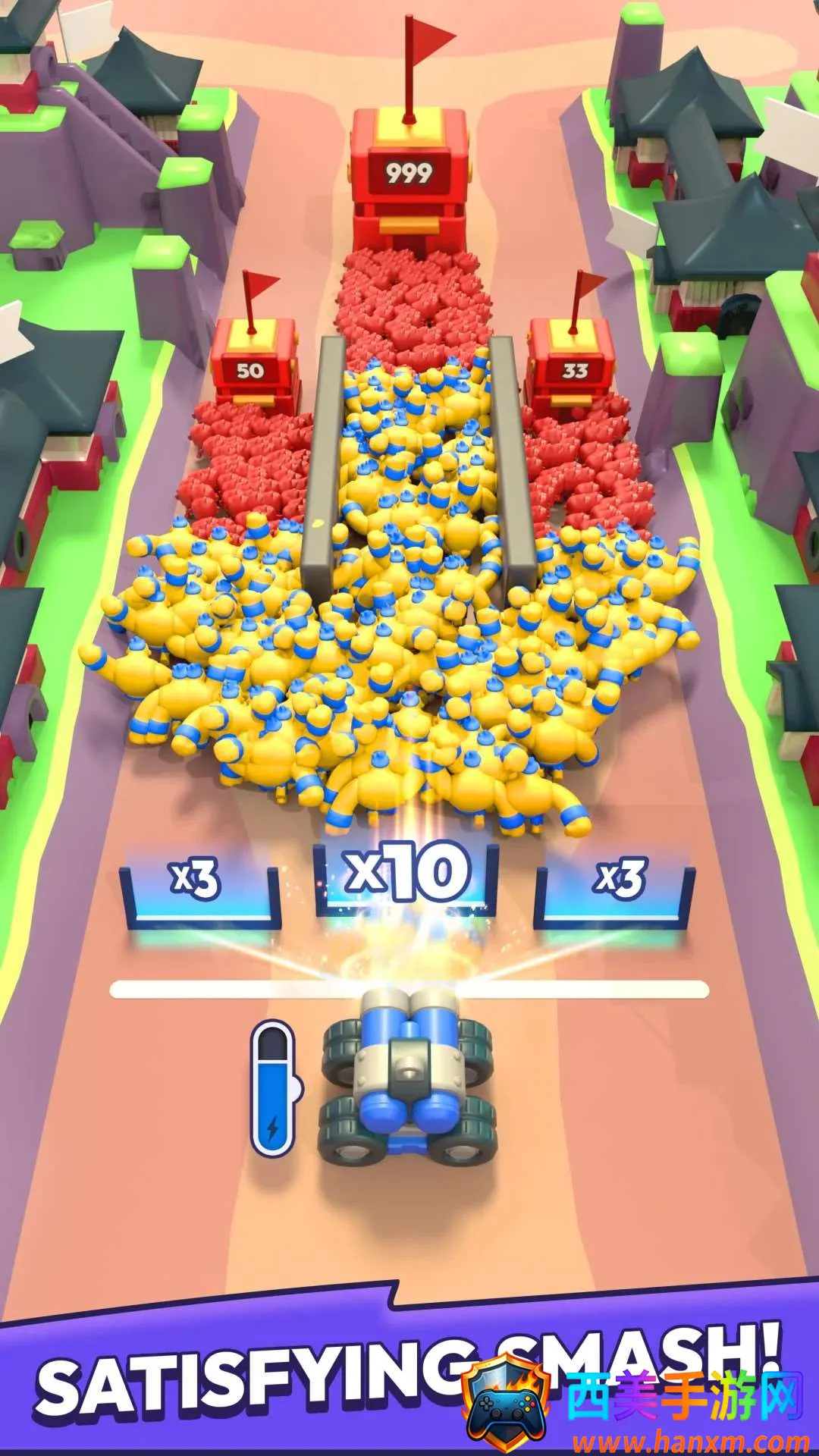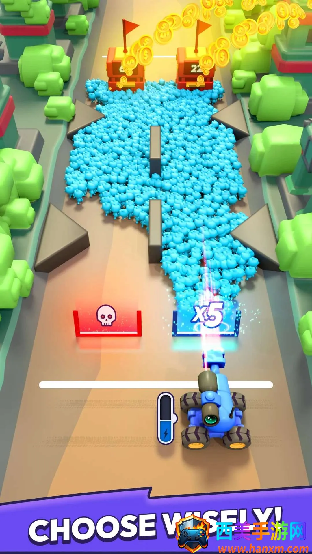 这款游戏有着独特魅力。其核心机制趣味十足,能通过大炮发射士兵到战场各位置。蓝色大门是关键战略资源,士兵穿过可人数倍增,增强战斗力,助玩家迅速扩展军队,占据人数上风。而红色大门则需警惕,避免士兵人数削弱。面对敌方堡垒挑战,利用人数优势合理对抗很重要。内置MOD菜单更是一大亮点,能轻松开启免费内购功能,无需安装直接秒玩,解锁新角色、提升技能、获取稀有道具等都轻而易举,让玩家畅享无限资源,体验前所未有的自由与乐趣。