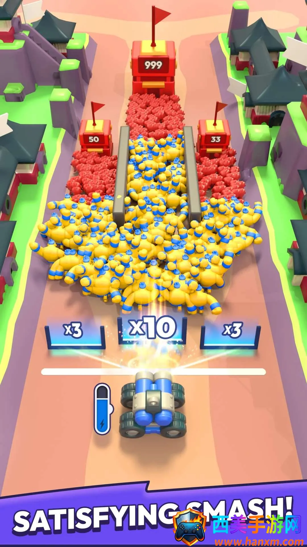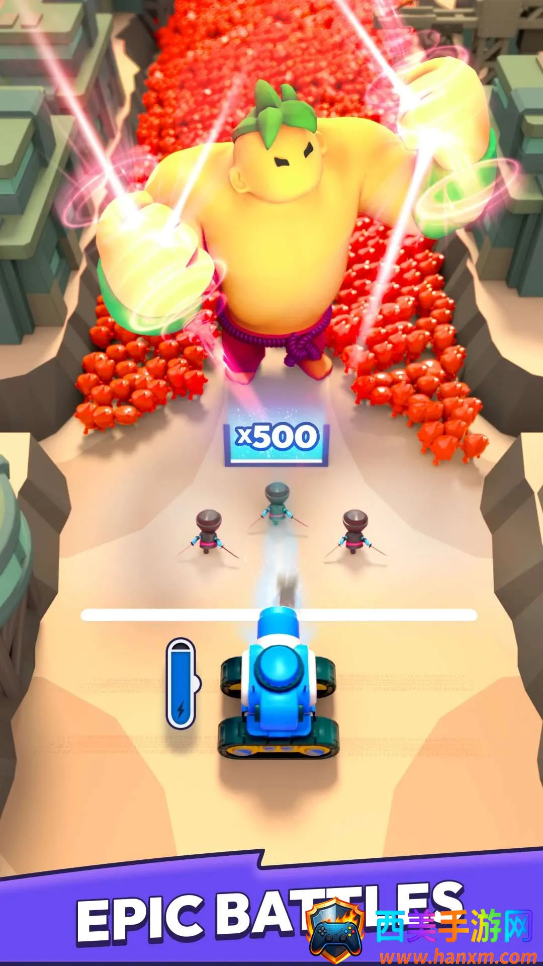 像素人控制内购版,玩家置身像素世界,用大炮发射士兵攻占敌堡。利用蓝色大门增兵,避开红色大门减员,凭借人数优势对抗敌人。内置MOD菜单可免费内购,秒玩畅享无限资源,解锁角色道具,体验冒险乐趣。