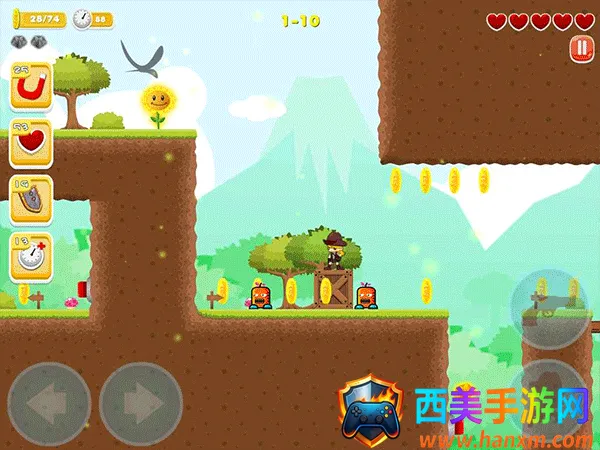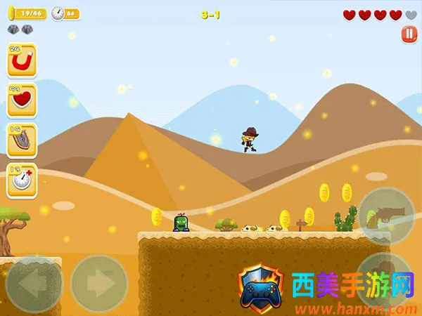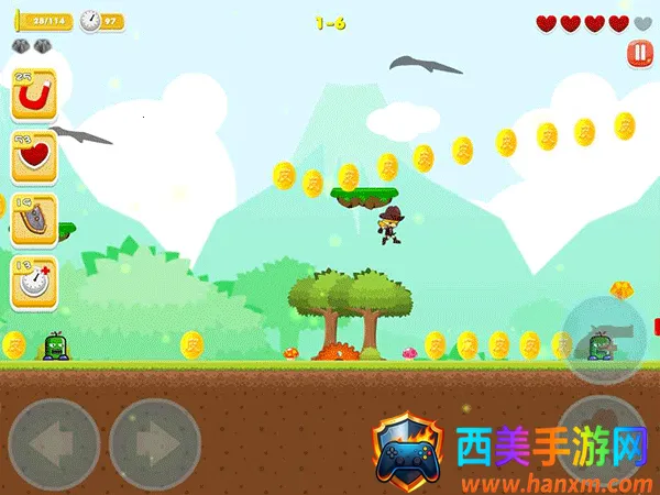 1、在游戏中玩家将通过右键头来操控角色的移动,并收集金币