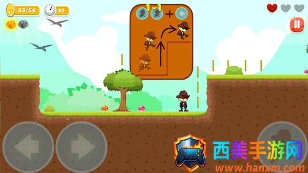 3、在悬空障碍物面前则按住右箭头同时,连续按两次按键来操控角色跳跃过去