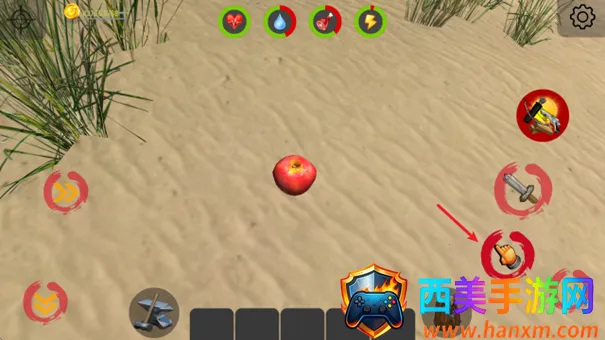 2、点击快捷栏中的食物,可以为我们补充能量。