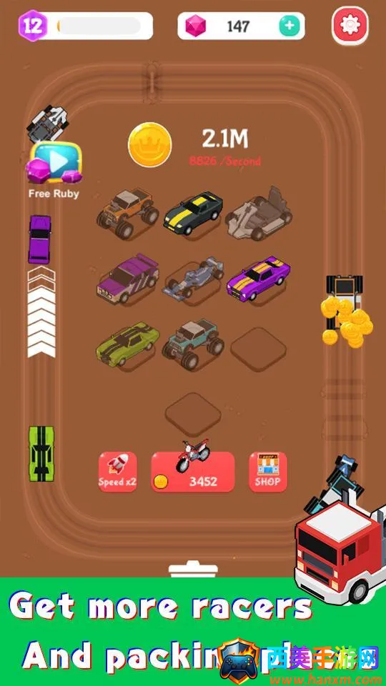 3. 社交竞技:支持与朋友同场竞技,通过攀登全球排行榜,展现卓越汽车合并技巧,成为赛车界传奇。