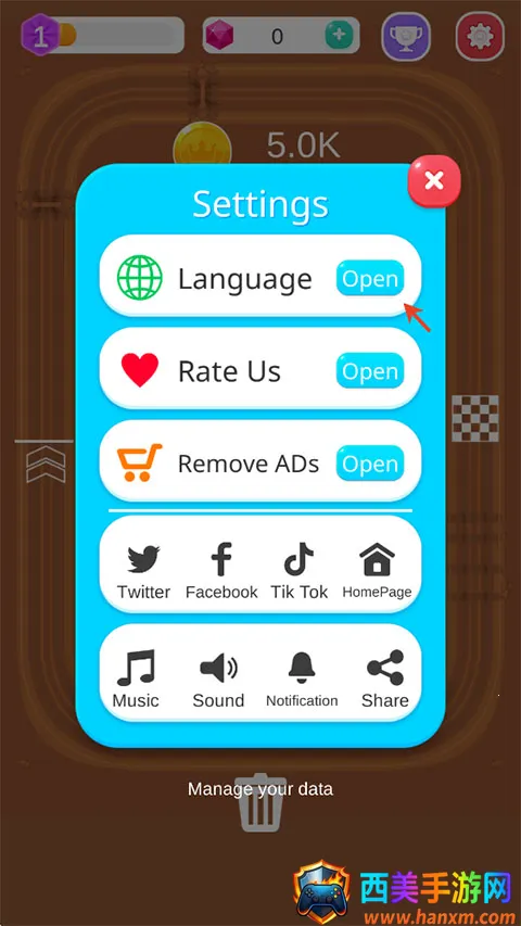 1、进入赛车大亨游戏内点击右上角的齿轮。