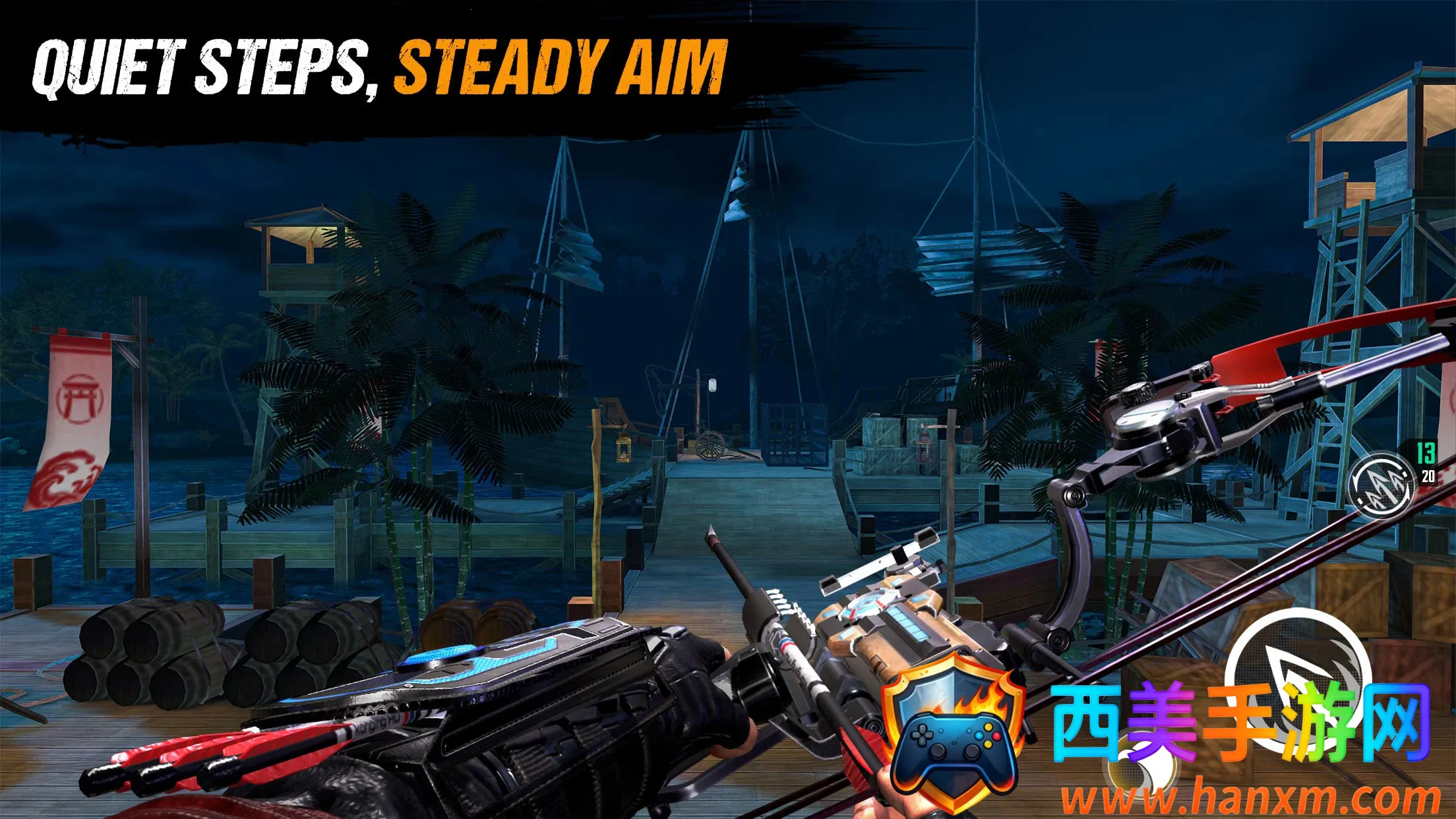3. 沉浸感十足的游戏体验:采用逼真的3D画面,打造高度沉浸式的都市战场,从阴森地下黑市到迷雾港口要塞,每个角落都潜藏危险,配合逼真物理引擎,精准还原弓箭轨迹和动态光照效果,让玩家仿若置身其中。