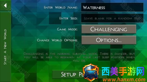 4、点击“new world”后,我们需要对创建世界,进行自定义的设置,设置完成后点击“setup player”