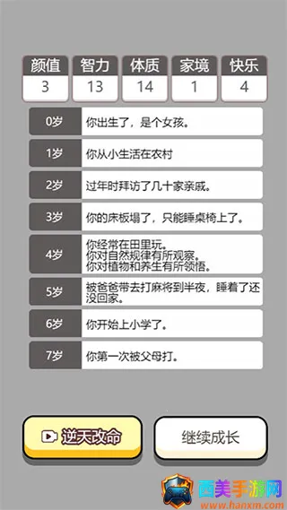 想体验不一样的人生吗?来试试人生重开模拟器爆改版!它玩法超自由,能让你自由选择人生。开局可调节颜值、智力、体质、家境等,之后系统会根据你的选择走向不同结局。这里没有角色选择、坐骑和装备,只有天赋和点数属性。游戏通过文字叙述,带你经历各种事件,每次选择都影响后续发展。比如最新版特色多多,开局有多样玩法,能解锁丰富内容,带来超多欢乐。亮点是人生全由自己决定,能体验各种经历,完美还原一生。还能修仙,有详细的修仙攻略,从必备天赋到属性变化,再到渡劫判定都有说明。它高度随机又自由,每个选择都带来不同人生,让你在游戏中对生活有所期待,快来下载体验吧!