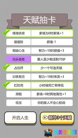 2、人生体验丰富,涵盖中国特色的考试考证、父母的教诲等,全方位模拟人生。