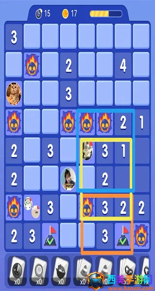 有些时候你会发现大家都统一来到了某一个方位,例如说都来到了左上角,虽然都没有站在一个格子里,但这也证明这块区域附近的雷大家已经摸透,那么你的下一步棋就需要远离这个区域了