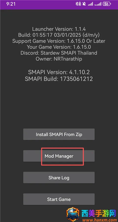 9、下载好mod后,打开smapi启动器,点击Mod Manager。