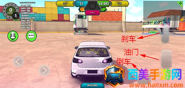 4、等待一会加载,进入游戏如图,屏幕左边控制方向,右边刹车,油门,倒车;