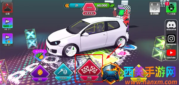 1、打开项目漂移2.0最新版,进入游戏后,点击屏幕中间的开始按钮;